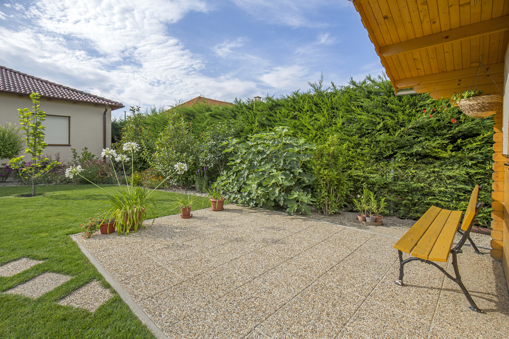 A Leier Classic-Line gyöngykavicsos burkolólap egy letisztult, modern megjelenésű kültéri betonlap, amely fagyálló és csúszásmentes tulajdonságai miatt ideális teraszok és kerti utak burkolására.