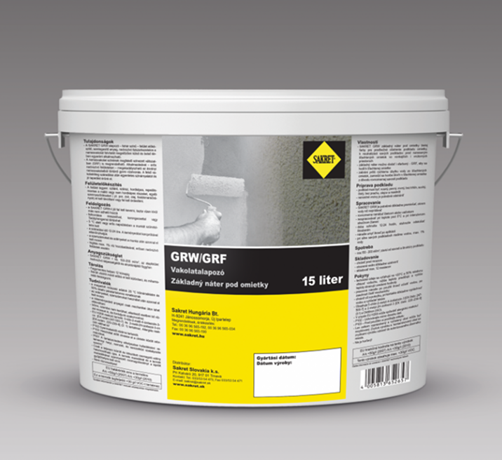 A SAKRET GRW alapozó fehér színű felület előkészítő, semlegesítő anyag nedvszívó falszerkezetekre a nemes vakolat felvitelét megelőzően. A nemes vakolat színének megfelelően színezett változatban is megrendelhető